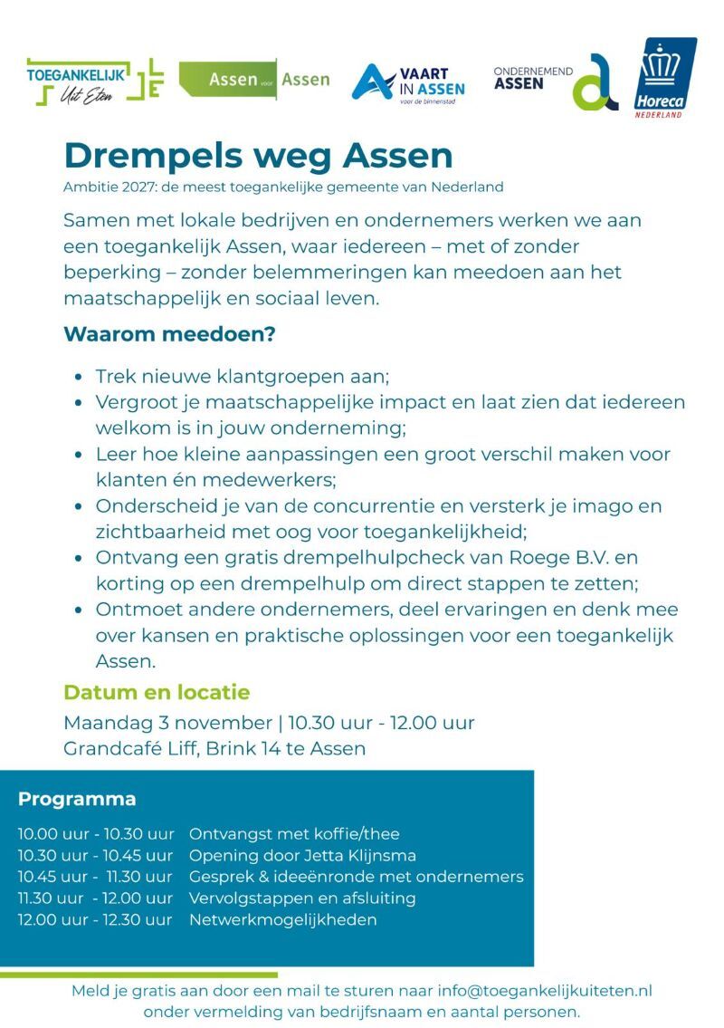 We slaan de handen ineen, laten we samen kijken hoe we Assen nog toegankelijker kunnen maken. Een ‘laagdrempelige’ bijeenkomst met o.a. Jetta Klijnsma.