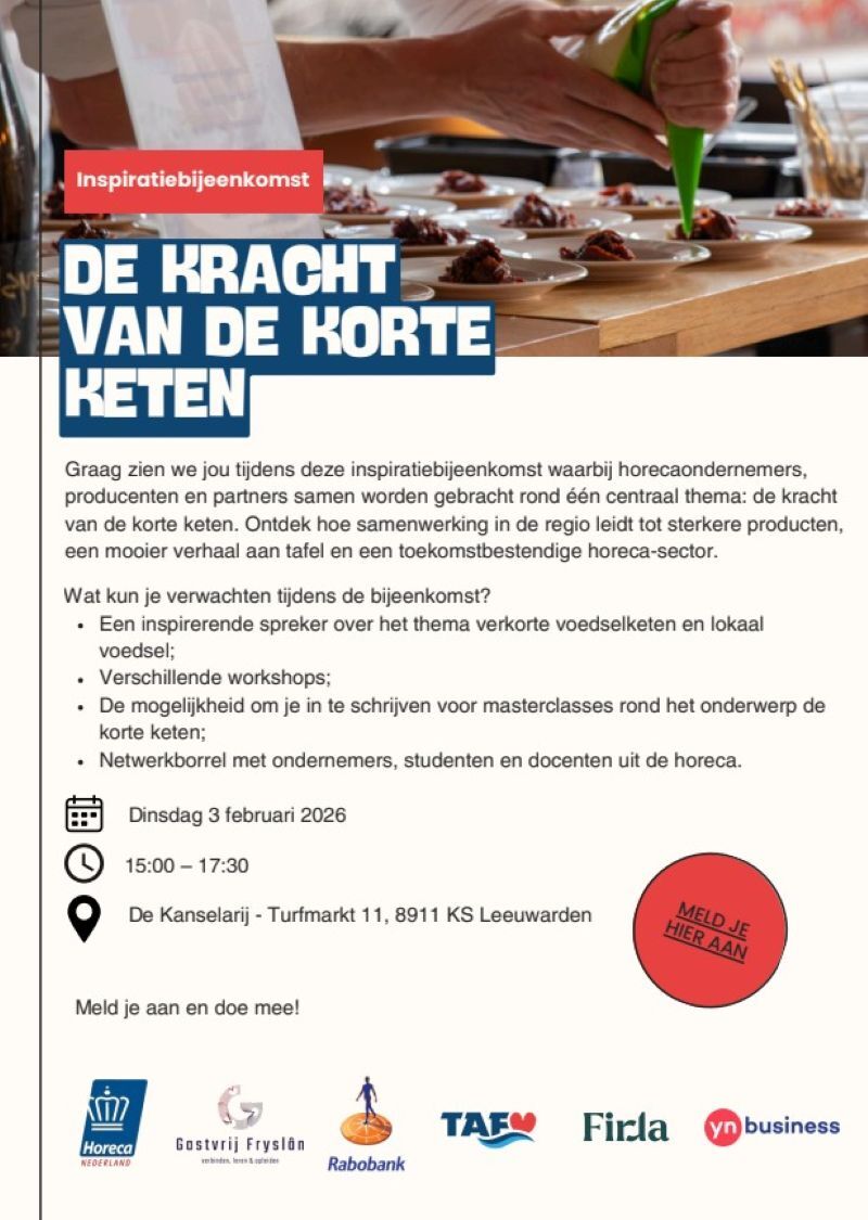 Je bent van harte welkom op deze inspirerende bijeenkomst die op dinsdag 3 februari 2026 wordt georganiseerd: “De Kracht van de Korte Keten” in de Kanselarij in Leeuwarden