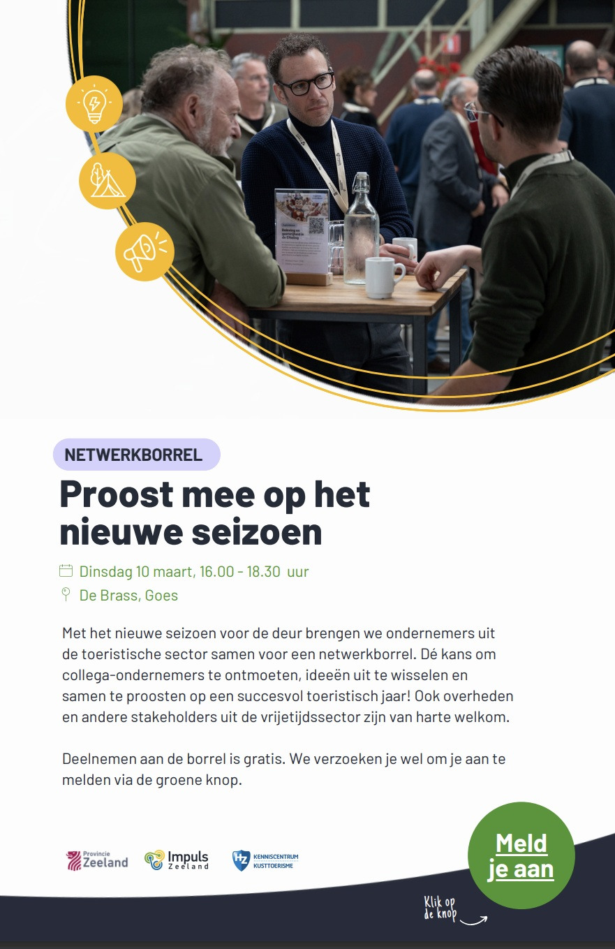 We worden uitgenodigd voor de opening van het aankomende zomerseizoen door Impuls, provincie Zeeland en het kenniscentrum Kusttoerisme.