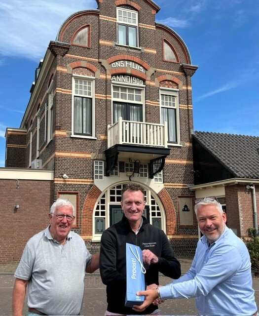 Regiomanager Toin de Ruiter kwam langs om een lekker fles bubbels te overhandigen aan vader & zoon Brouwer. Vader Brouwer heeft 25 jaar geleden het pand aangekocht, hij was al eerder ondernemer in de klein metaal. Het monumentale pand is in 1909 uit liefdadigheid door een vermogende familie gebouwd voor de gemeenschap van Rheden. Anno nu zwaait zoon Nico en zijn vriendin de scepter in het horecabedrijf.