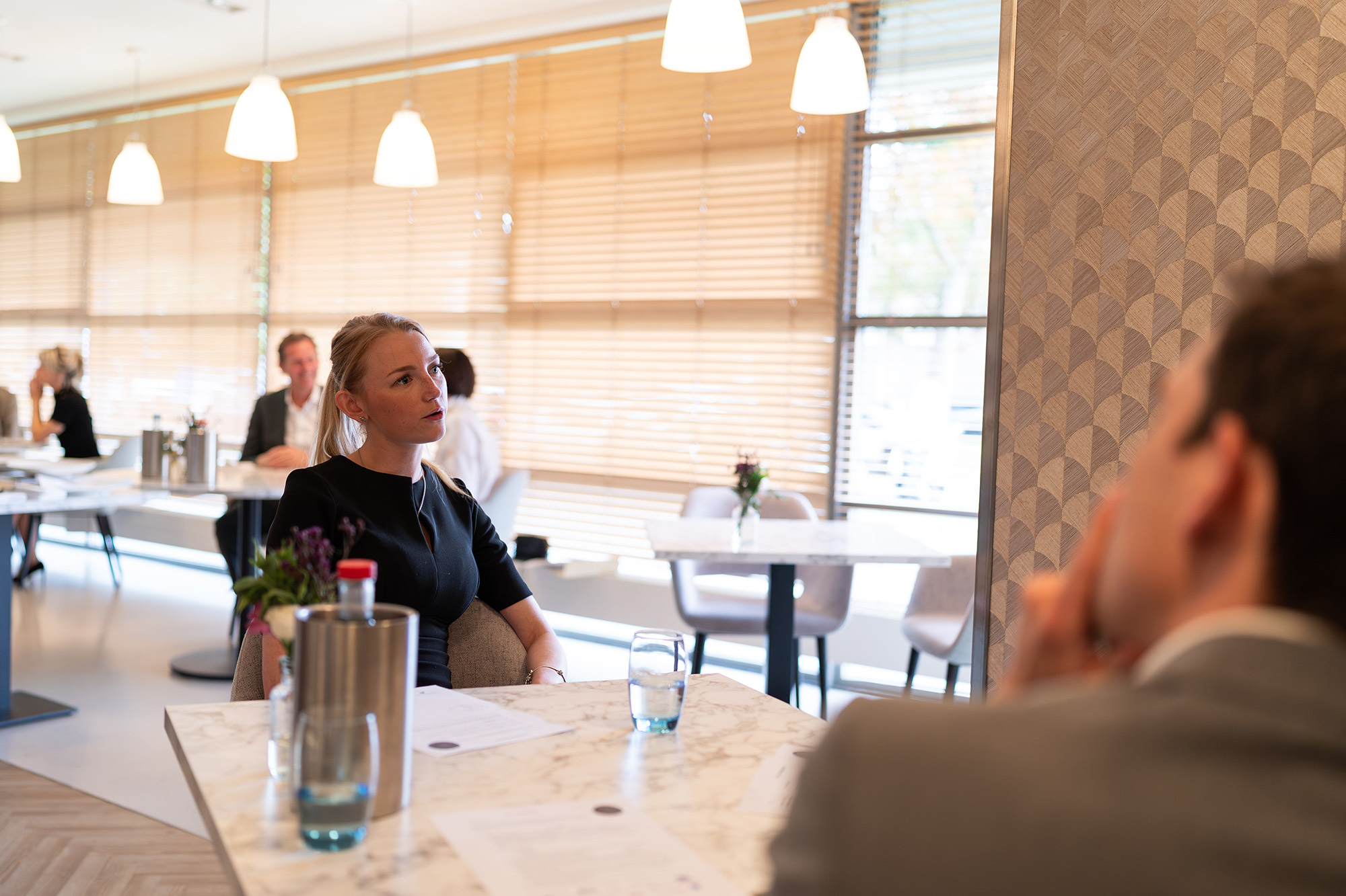 Daarna volgde het verkoopgesprek. Sanne kreeg een case voorgelegd: een Sweet Sixteen party die tot in detail moest worden georganiseerd. In korte tijd werkte ze haar ideeën uit en overtuigde ze de ‘ceremoniemeesters’ met creatieve voorstellen. Van vervoer per watertaxi met hapjes aan boord tot hotelkamers voor gasten die willen blijven overnachten: Sanne dacht overal in mee. Ook lastige kwesties, zoals alcohol voor minderjarigen, schuwde ze niet. “Onder de achttien schenken wij echt niet,” stelde ze resoluut.